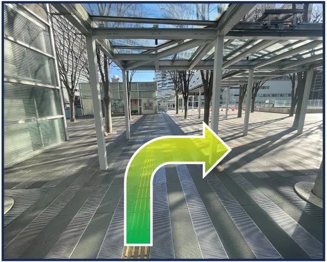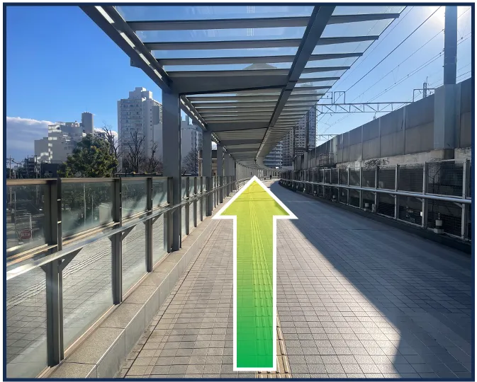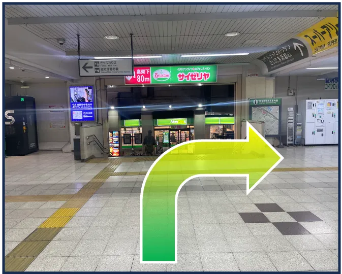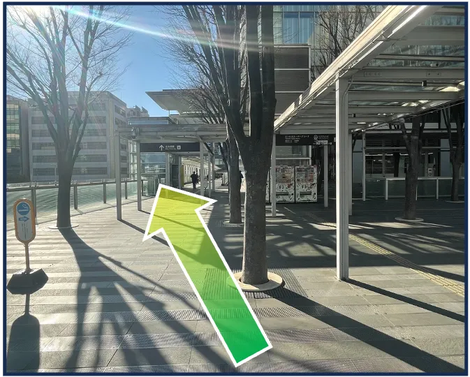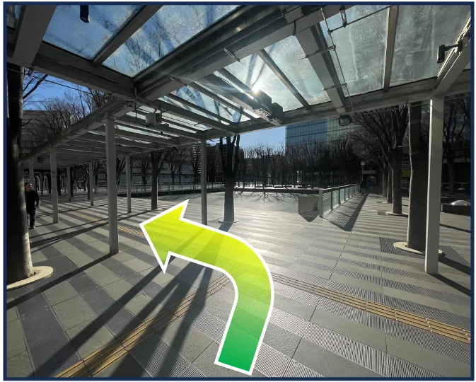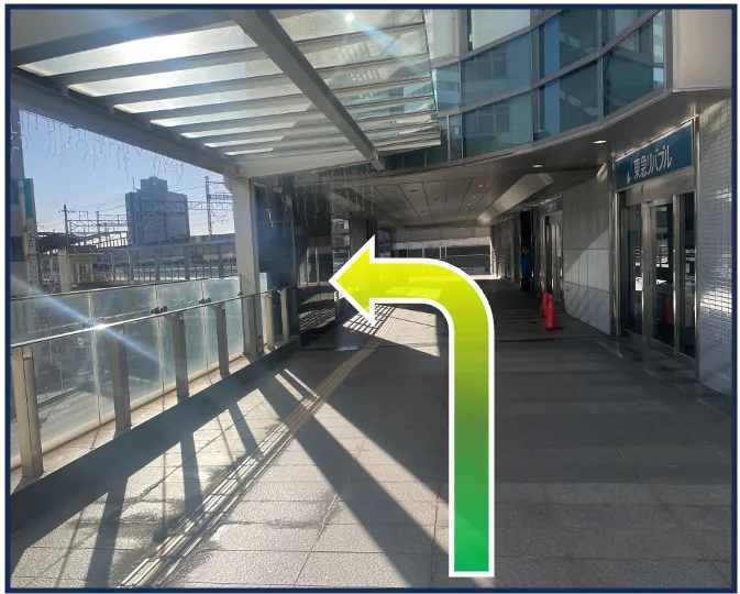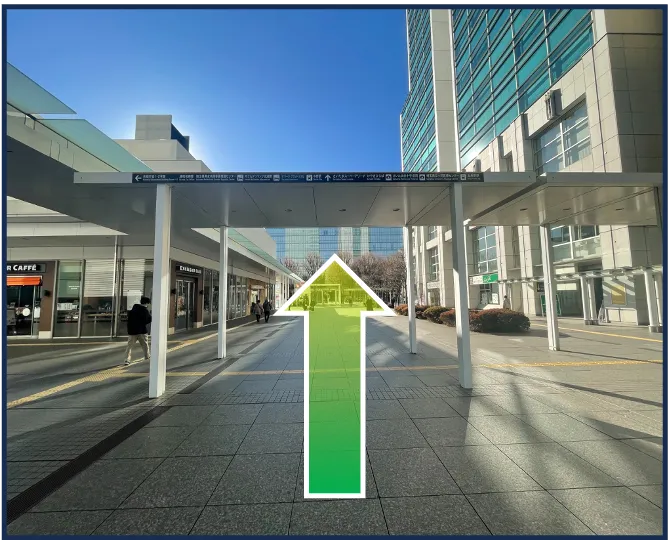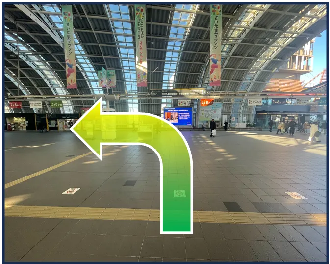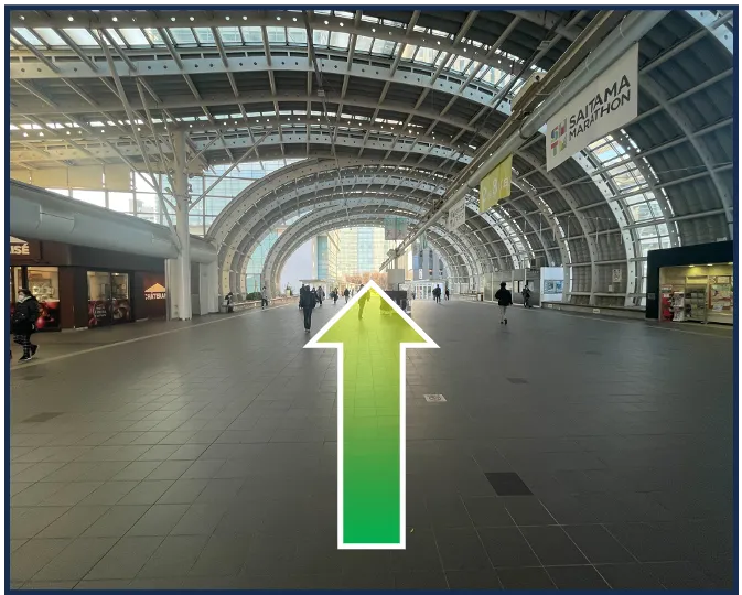 コンコースに沿ってまっすぐ進み、左に曲がります。