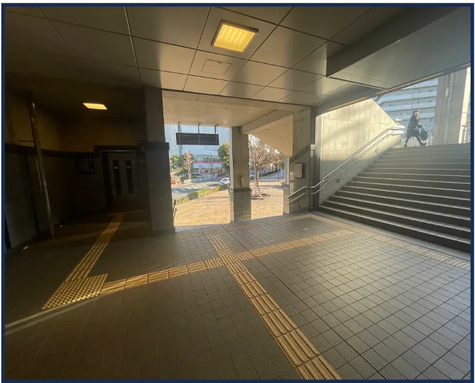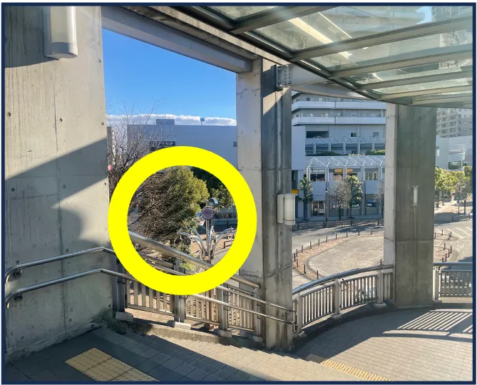 「出口まで歩いたら、階段を下り、ロータリーに出てください。