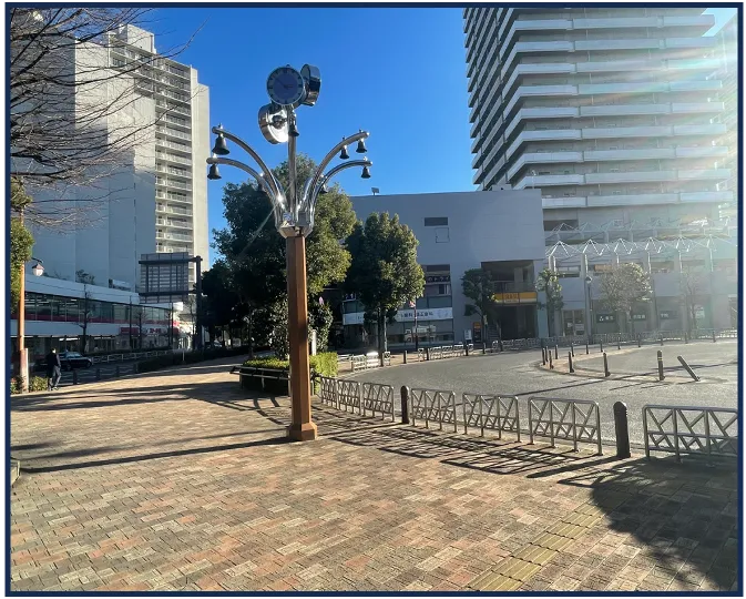 「北与野駅」の看板が見えてきました。看板をくぐりまっすぐ進みます。
